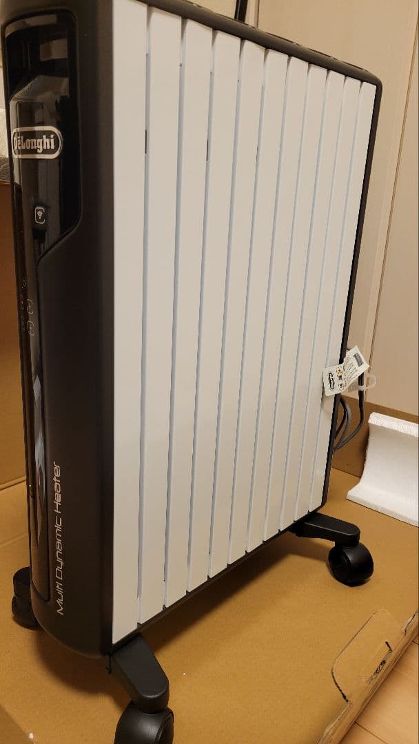 DeLonghiマルチダイナミックヒーター型番:MDHU12-BK購入日:2023/1/3使用状況:1シーズンのみ使用商品詳細:輻射熱で部屋全体を暖める「ゼロ風暖房」。温風を出さないため、肌も喉も乾燥しにくく、空気を汚さない。節電や速暖にも優れ、クリックノブで操作も簡単。便利なリモコン付き。広さの目安:8畳*¹~10畳*²輻射熱で部屋全体を暖め、肌も喉も乾燥しにくく、空気を汚さない高精度な温度コントロールを行う「オートアダプティブテクノロジー」従来比2倍*³の速暖性極めて静かな運転音火事が起きにくい安全設計お子様の誤作動を防ぐチャイルドロック機能24時間デジタルタイマーで快適&節電